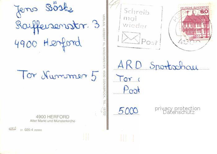 72842394 alte Postkarte Herford Alter Markt Muensterkirche postalisch gelaufen Erhaltung siehe scans [PaolaD17] KatCode: 11110005758012
