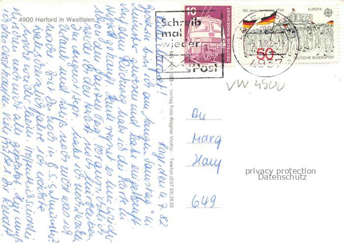74104830 alte Postkarte HERFORD Baeckerstrasse Gehrenburg Alter Markt Neuer Markt Bruederstrasse postalisch gelaufen Erhaltung siehe scans [WerneD78] KatCode: 11110005758012