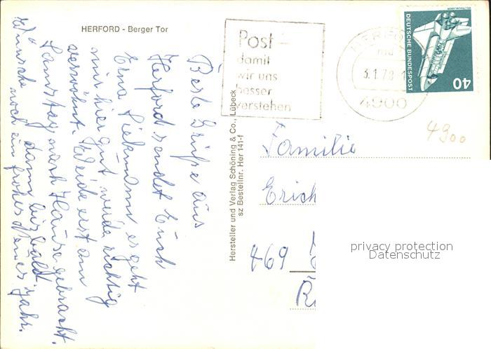 72385412 alte Postkarte Herford Berger Tor postalisch gelaufen Erhaltung siehe scans KatCode: 11110005758012