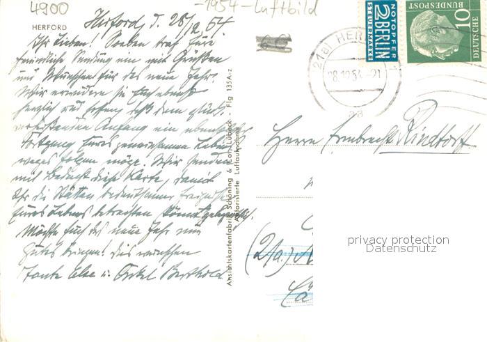 73706713 alte Postkarte Herford Fliegeraufnahme postalisch gelaufen Erhaltung siehe scans [WerneD78] KatCode: 11110005758012