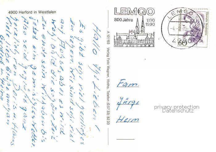 72654395 alte Postkarte Herford Panorama Baeckerstr Gehrenberg Bruederstr Alter Markt Neuer Markt postalisch gelaufen Erhaltung siehe scans [WerneD78] KatCode: 11110005758012