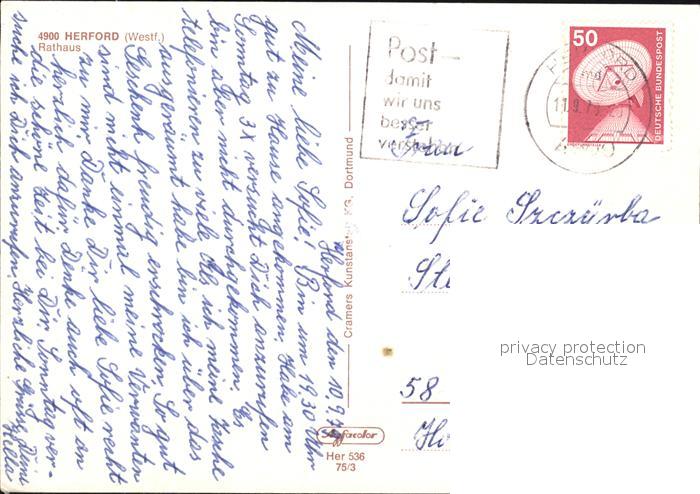 72422133 alte Postkarte Herford Rathaus Denkmal postalisch gelaufen Erhaltung siehe scans KatCode: 11110005758012
