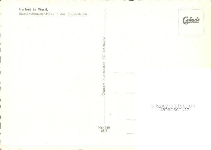 71998917 Herford Riemenschneider-Haus Fachwerk in Bruederstrasse postalisch nicht gelaufen Erhaltung siehe scans KatCode: 11110005758012