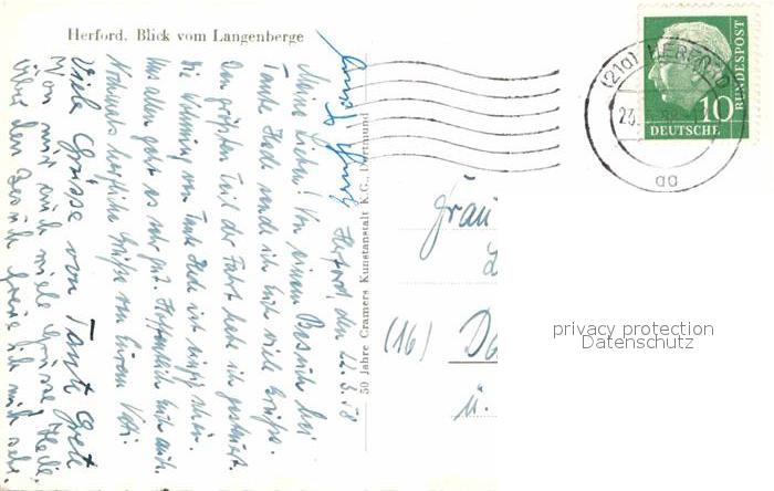 72786814 alte Postkarte Herford Stadtbild Blick vom Langenberge postalisch gelaufen Erhaltung siehe scans [FriedD77] KatCode: 11110005758012