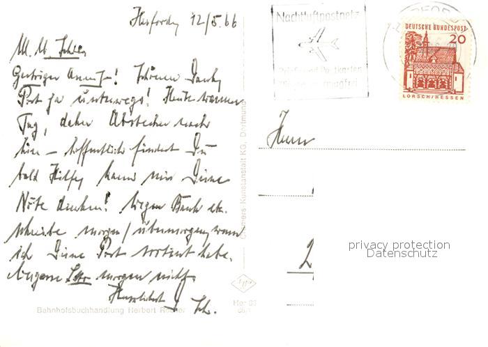 73135732 alte Postkarte Herford Wilhelmsplatz Uferpromenade Werra Freibad Riemenschneiderhaus Fachwerkhaus Bergertor Rathaus Landkarte postalisch gelaufen Erhaltung siehe scans [FriedD77] KatCode: 11110005758012