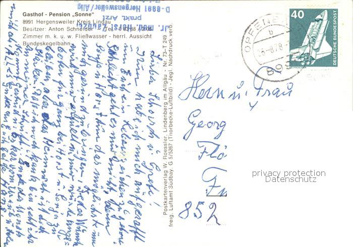 72024002 alte Postkarte Hergensweiler Fliegeraufnahme mit Alpenpanorama postalisch gelaufen Erhaltung siehe scans KatCode: 11110009776115