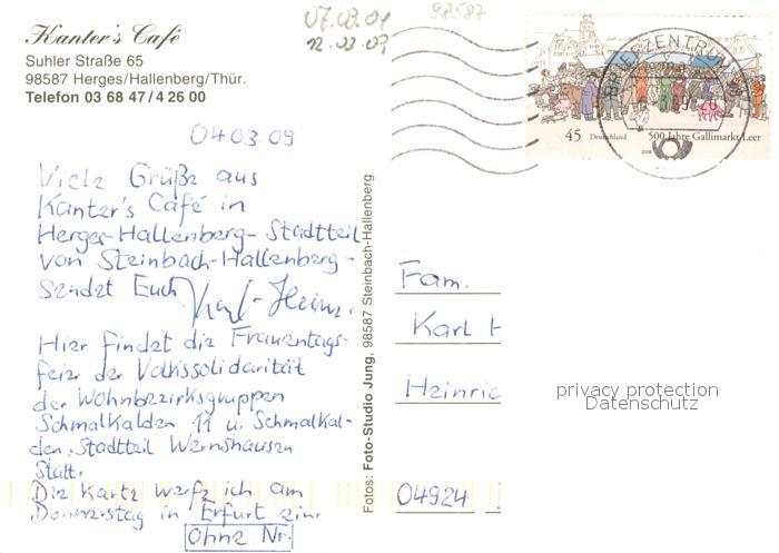 73643068 alte Postkarte Herges Hallenberg Steinbach Hallenberg Kanter’s Cafe Gastraum postalisch gelaufen Erhaltung siehe scans [FriedD77] KatCode: 11110016066063
