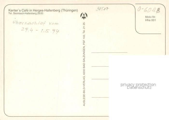 73648719 Herges Hallenberg Steinbach Hallenberg Kanters Cafe Gaststube Bar postalisch nicht gelaufen Erhaltung siehe scans [WerneD78] KatCode: 11110016066063
