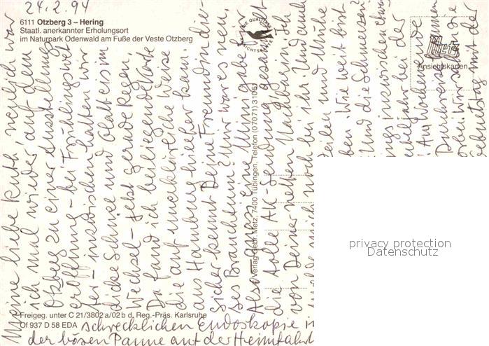 72878535 Hering Odenwald Erholungsort im Naturpark Odenwald Veste Otzberg Fliegeraufnahme postalisch nicht gelaufen Erhaltung siehe scans [FriedD77] KatCode: 11110006432017