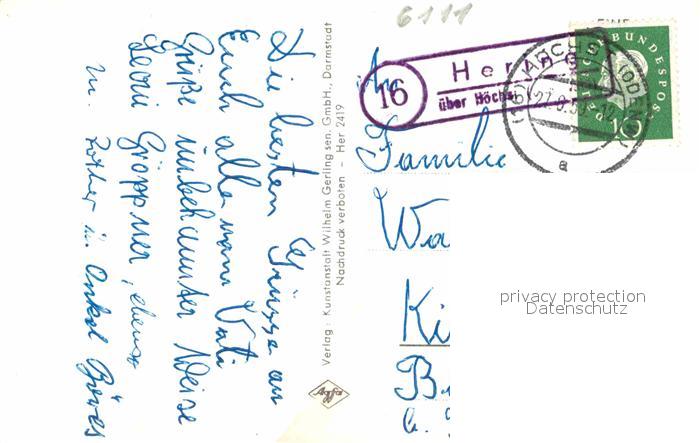 72863808 alte Postkarte Hering Odenwald Schloss Turm Kirche postalisch gelaufen Erhaltung siehe scans [WerneD78] KatCode: 11110006432017