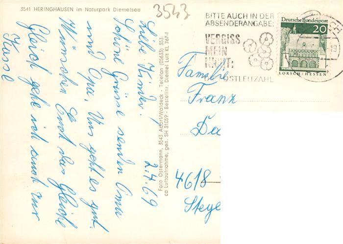 73938777 alte Postkarte Heringhausen Bestwig Sauerland Ansicht mit Campingplatz Naturpark Diemelsee postalisch gelaufen Fliegeraufnahme Erhaltung siehe scans [FriedD77] KatCode: 11110005958008