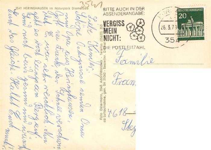 73935551 alte Postkarte Heringhausen Diemelsee Waldeck Campingplatz Naturpark Diemelsee postalisch gelaufen Fliegeraufnahme Erhaltung siehe scans [FriedD77] KatCode: 11110006635007