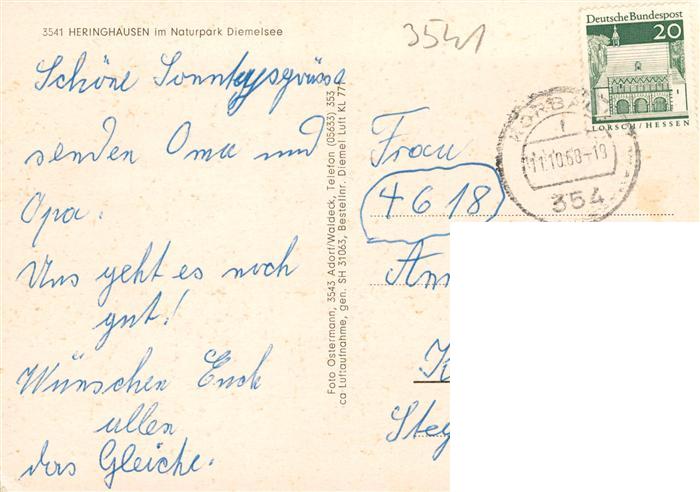 73938775 alte Postkarte Heringhausen Diemelsee Waldeck Ort im Naturpark Diemelsee postalisch gelaufen Fliegeraufnahme Erhaltung siehe scans [FriedD77] KatCode: 11110006635007