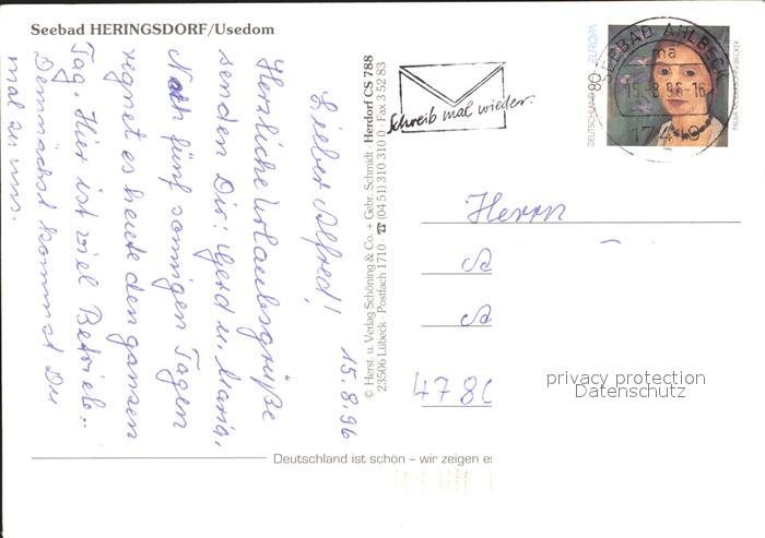 72221738 alte Postkarte Heringsdorf Ostseebad Usedom postalisch gelaufen Erhaltung siehe scans KatCode: 11110013059112