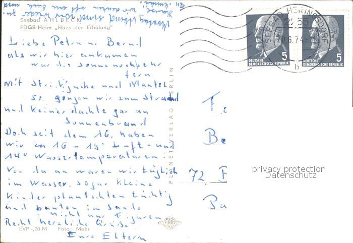 71939312 alte Postkarte Heringsdorf Ostseebad Usedom Ahlbeck FDGB Heim Haus Erholung postalisch gelaufen Erhaltung siehe scans KatCode: 11110013059112