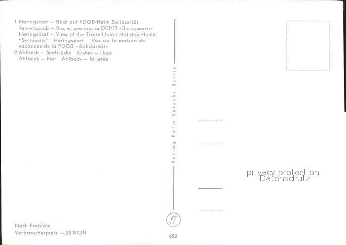 72551733 Heringsdorf Ostseebad Usedom Ahlbeck FDGB Heim Solidaritaet Seebruecke Pier postalisch nicht gelaufen Erhaltung siehe scans [KathaD79] KatCode: 11110013059112