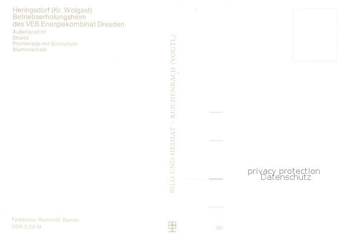 72971427 Heringsdorf Ostseebad Usedom Betriebserholungsheim VEB Energiekombinat Dresden Strand Promenade Sonnenuhr Blumenschale postalisch nicht gelaufen Erhaltung siehe scans [FriedD77] KatCode: 11110013059112