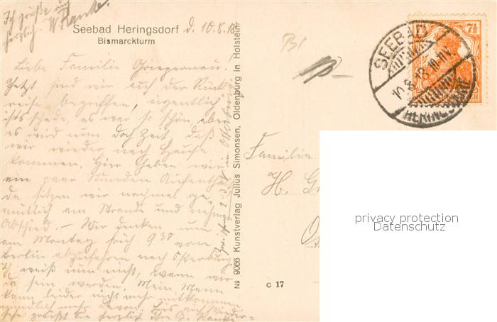 73807958 alte Postkarte Heringsdorf Ostseebad Usedom Bismarckturm postalisch gelaufen Erhaltung siehe scans [WerneD78] KatCode: 11110013059112