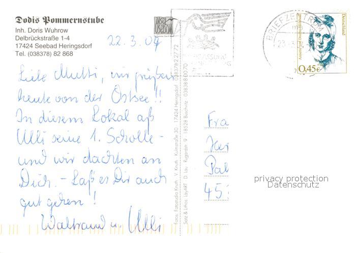 73334914 alte Postkarte Heringsdorf Ostseebad Usedom Dodis Pommernstube Restaurant postalisch gelaufen Erhaltung siehe scans [LiesaD40] KatCode: 11110013059112
