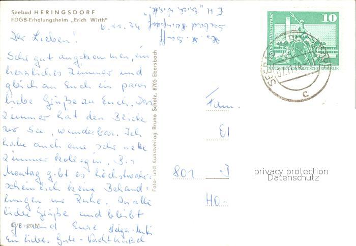72445380 alte Postkarte Heringsdorf Ostseebad Usedom FDGB Erholungsheim Erich Wirth postalisch gelaufen Erhaltung siehe scans KatCode: 11110013059112