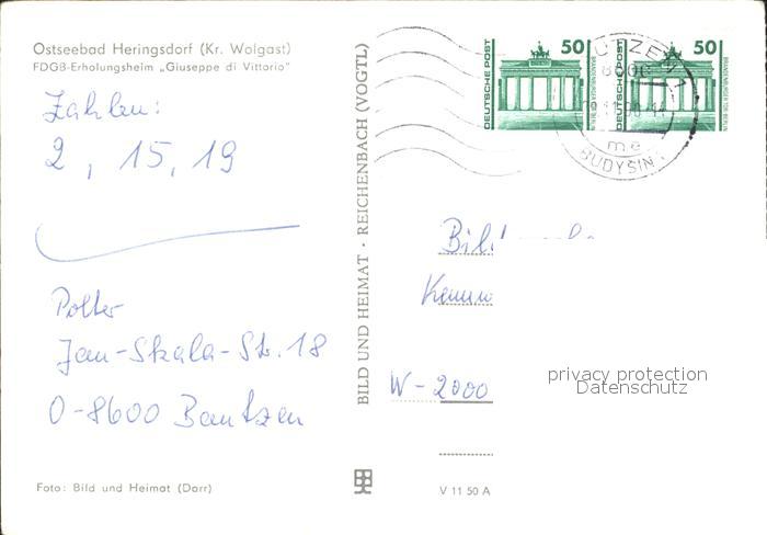 72135286 alte Postkarte Heringsdorf Ostseebad Usedom FDGB Erholungsheim Giuseppe di Vittorio postalisch gelaufen Erhaltung siehe scans KatCode: 11110013059112