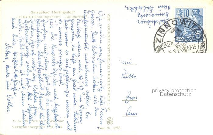 72113510 alte Postkarte Heringsdorf Ostseebad Usedom FDGB Erholungsheim Solidaritaet postalisch gelaufen Erhaltung siehe scans KatCode: 11110013059112