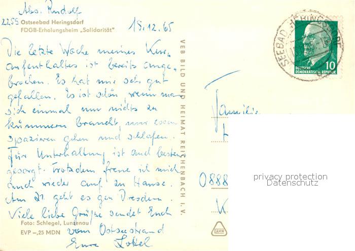 73036593 alte Postkarte Heringsdorf Ostseebad Usedom FDGB Erholungsheim Solidaritaet postalisch gelaufen Erhaltung siehe scans [KathaD81] KatCode: 11110013059112