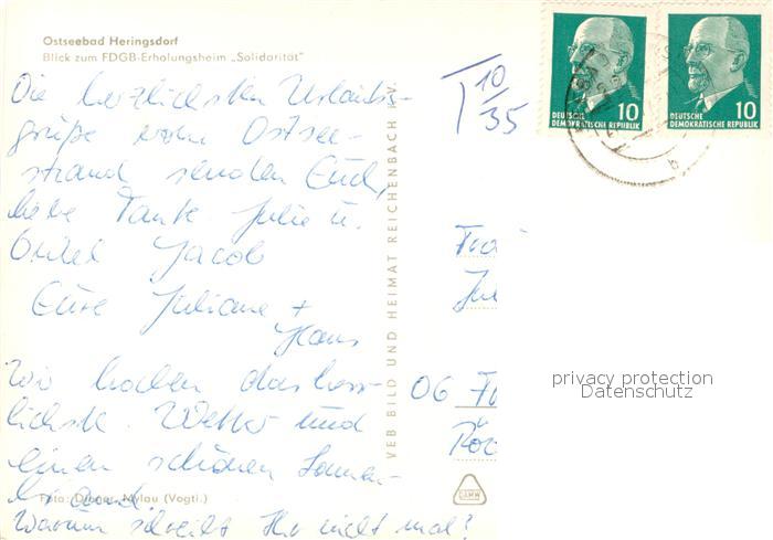 73739171 alte Postkarte Heringsdorf Ostseebad Usedom FDGB Erholungsheim Solidaritaet postalisch gelaufen Erhaltung siehe scans [FriedD77] KatCode: 11110013059112
