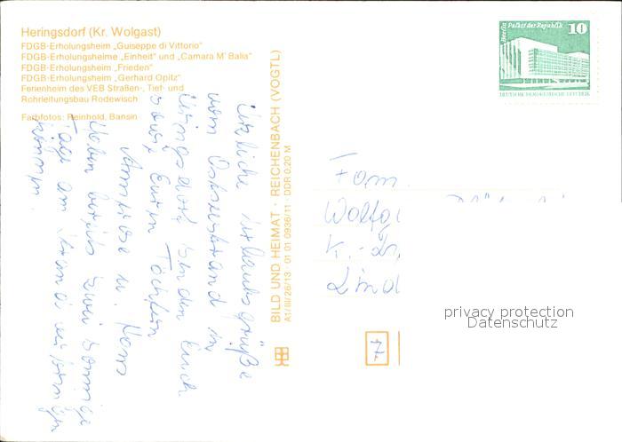 72354956 Heringsdorf Ostseebad Usedom FDGB Erholungsheime Ferienheim postalisch nicht gelaufen Erhaltung siehe scans KatCode: 11110013059112