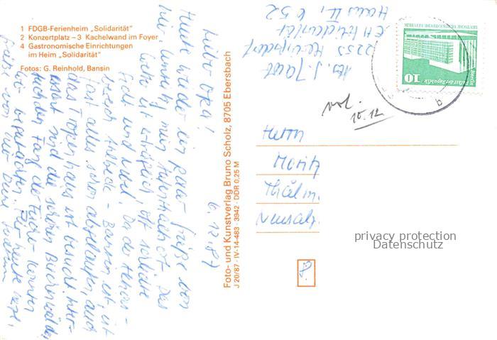 74026392 alte Postkarte HERINGSDORF Ostseebad Usedom FDGB-Ferienheim Solidaritaet Kachelwand Foyer Konzertplatz postalisch gelaufen Erhaltung siehe scans [FriedD77] KatCode: 11110013059112