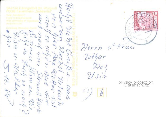 72457551 alte Postkarte Heringsdorf Ostseebad Usedom FDGB Ferienheim Solidaritaet postalisch gelaufen Erhaltung siehe scans KatCode: 11110013059112