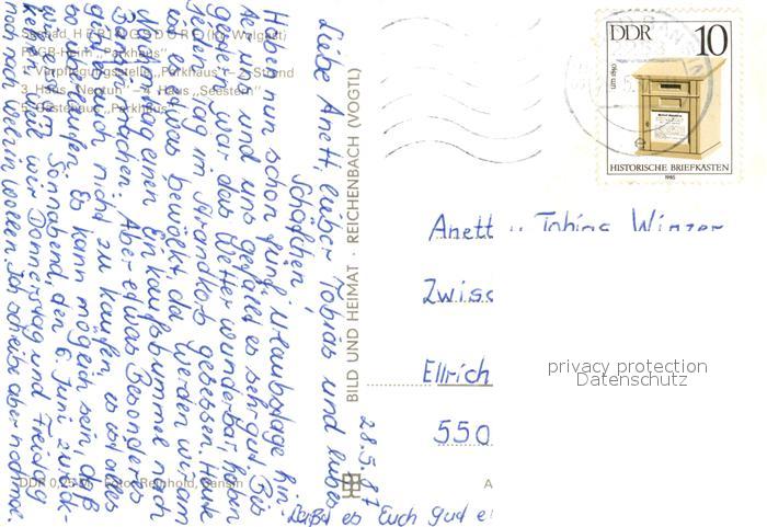 73036334 alte Postkarte Heringsdorf Ostseebad Usedom FDGB Heim Parkhaus Haus Neptun Haus Seestern Strand postalisch gelaufen Erhaltung siehe scans [KathaD81] KatCode: 11110013059112