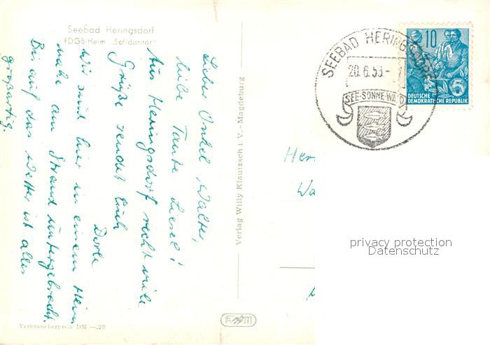 73034156 alte Postkarte Heringsdorf Ostseebad Usedom FDGB Heim Solidaritaet postalisch gelaufen Erhaltung siehe scans [KathaD81] KatCode: 11110013059112