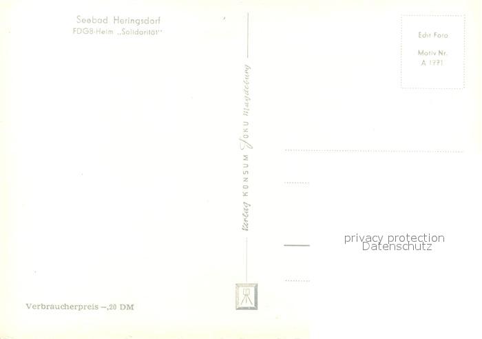 73033596 Heringsdorf Ostseebad Usedom FDGB Heim Solidaritaet postalisch nicht gelaufen Erhaltung siehe scans [KathaD81] KatCode: 11110013059112
