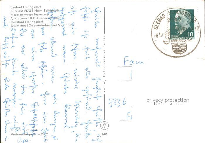 72418504 alte Postkarte Heringsdorf Ostseebad Usedom FDGB Heim Solidaritaet Strand postalisch gelaufen Erhaltung siehe scans KatCode: 11110013059112