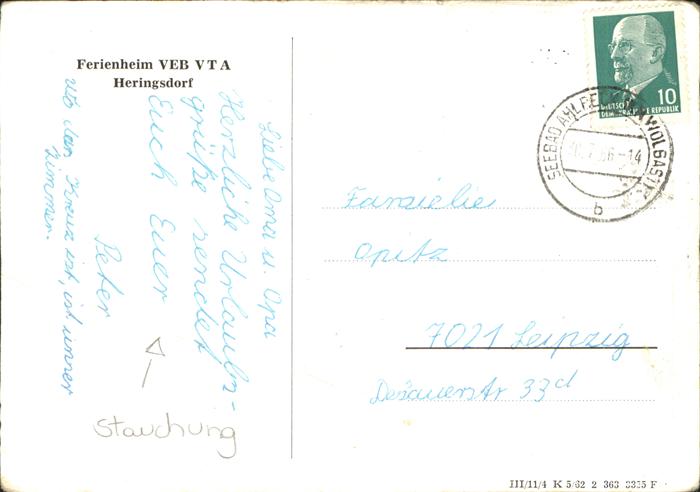 41246780 Heringsdorf Ostseebad Usedom Ferienheim VEB VTA KatCode 11110013059112