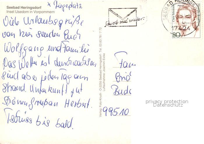 73155605 alte Postkarte Heringsdorf Ostseebad Usedom Fliegeraufnahme postalisch gelaufen Erhaltung siehe scans [WerneD78] KatCode: 11110013059112