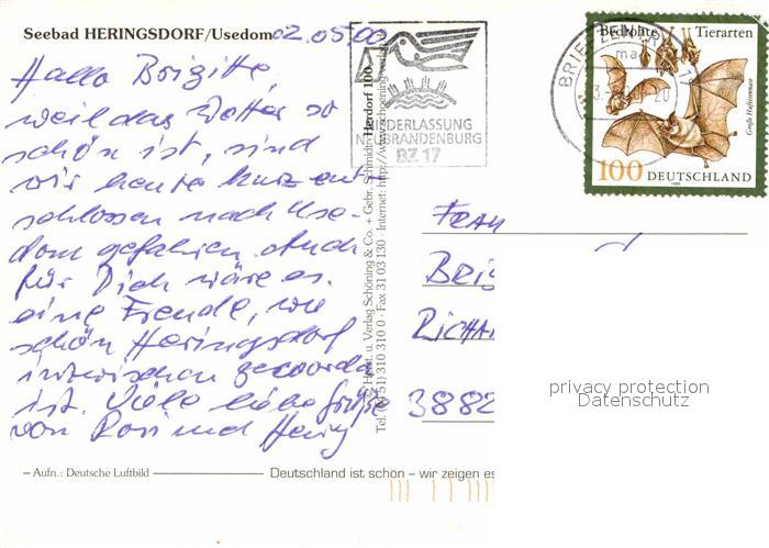 72825182 alte Postkarte Heringsdorf Ostseebad Usedom Fliegeraufnahme postalisch gelaufen Erhaltung siehe scans [FriedD77] KatCode: 11110013059112