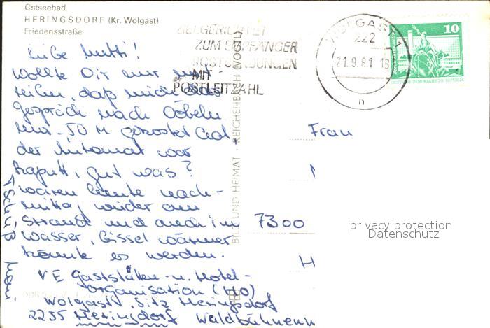 72030614 alte Postkarte Heringsdorf Ostseebad Usedom Friedensstrase postalisch gelaufen Erhaltung siehe scans KatCode: 11110013059112