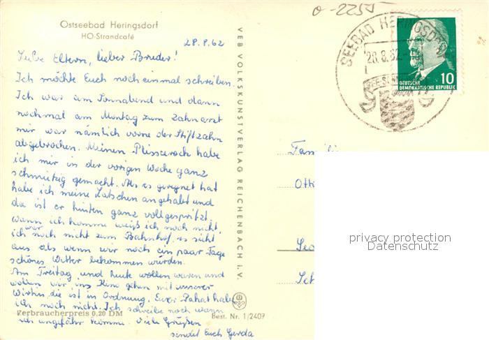 43496409 alte Postkarte Heringsdorf Ostseebad Usedom HO Strandcafe postalisch gelaufen Erhaltung siehe scans [FriedD77] KatCode: 11110013059112