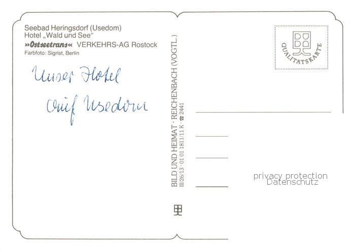 73755045 Heringsdorf Ostseebad Usedom Hotel Wald und See postalisch nicht gelaufen Erhaltung siehe scans [FriedD77] KatCode: 11110013059112