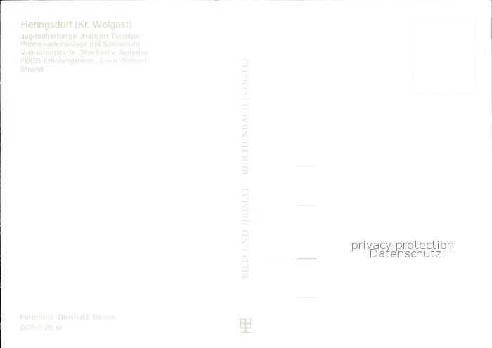 72550682 Heringsdorf Ostseebad Usedom Jugendherberge Herbert Tschaepe Promenade Sonneuhr Strand postalisch nicht gelaufen Erhaltung siehe scans [KathaD79] KatCode: 11110013059112