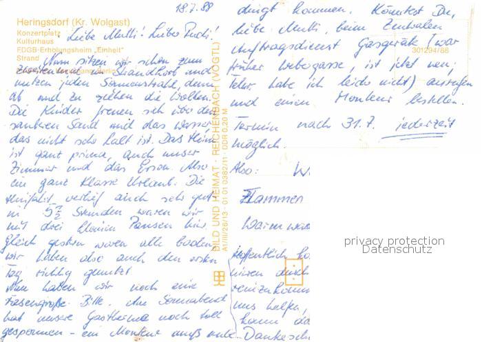 72624750 Heringsdorf Ostseebad Usedom Konzertplatz Kulturhaus FDGB Erholungsheim Einheit Strand postalisch nicht gelaufen Erhaltung siehe scans [WerneD78] KatCode: 11110013059112