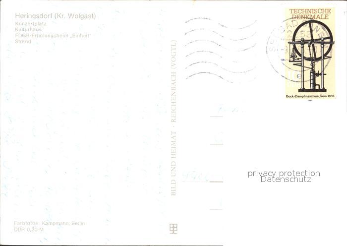 72336057 alte Postkarte Heringsdorf Ostseebad Usedom Konzertplatz Kulturhaus FDGB Erholungsheim Einheit Strand postalisch gelaufen Erhaltung siehe scans KatCode: 11110013059112