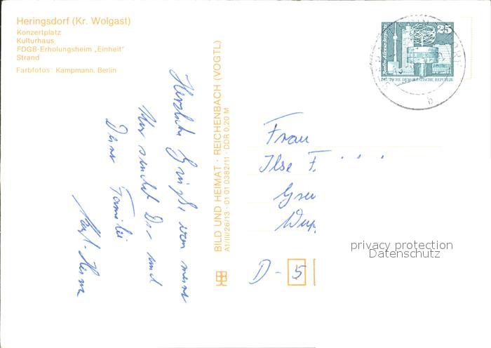 72331363 alte Postkarte Heringsdorf Ostseebad Usedom Konzertplatz Kulturhaus FDGB-Erholungsheim Einheit postalisch gelaufen Erhaltung siehe scans KatCode: 11110013059112