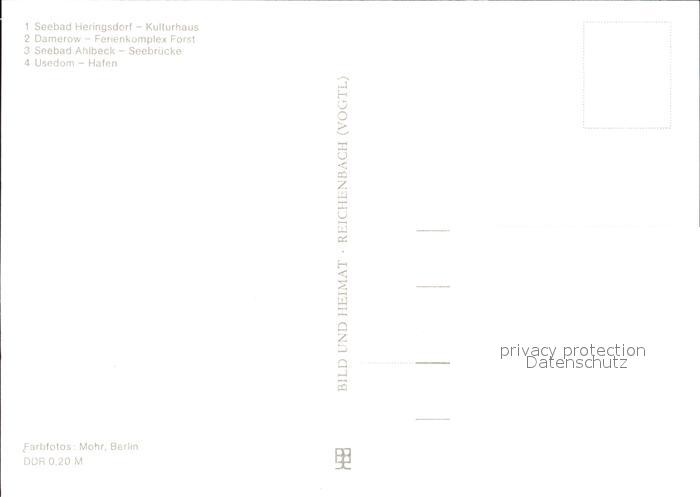 72564683 Heringsdorf Ostseebad Usedom Kulturhaus Damerow Ahlbeck Seebr?cke Usedom Hafen postalisch nicht gelaufen Erhaltung siehe scans [LiesaD40] KatCode: 11110013059112