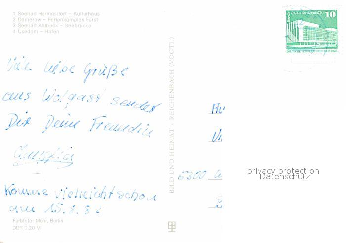 72630585 alte Postkarte Heringsdorf Ostseebad Usedom Kulturhaus Damerow Ahlbeck Seebruecke Hafen postalisch gelaufen Erhaltung siehe scans [LiesaD40] KatCode: 11110013059112