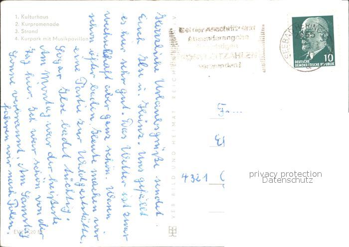 72071755 alte Postkarte Heringsdorf Ostseebad Usedom Kulturhaus Kurpromenade Strand Kurpark Musikpavillon postalisch gelaufen Erhaltung siehe scans KatCode: 11110013059112