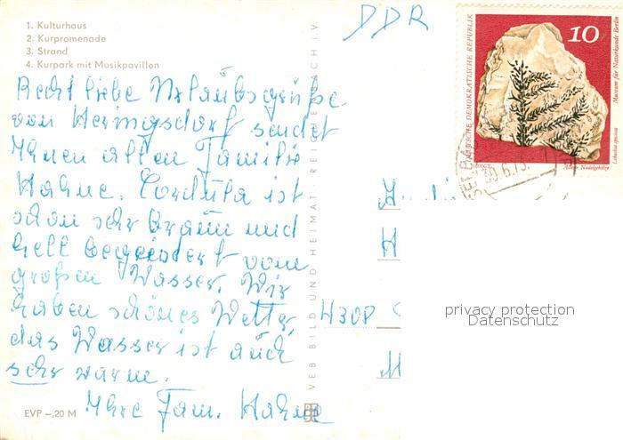 73070167 alte Postkarte Heringsdorf Ostseebad Usedom Kulturhaus Kurpromenade Strand Kurpark Musikpavillon postalisch gelaufen Erhaltung siehe scans [FriedD77] KatCode: 11110013059112
