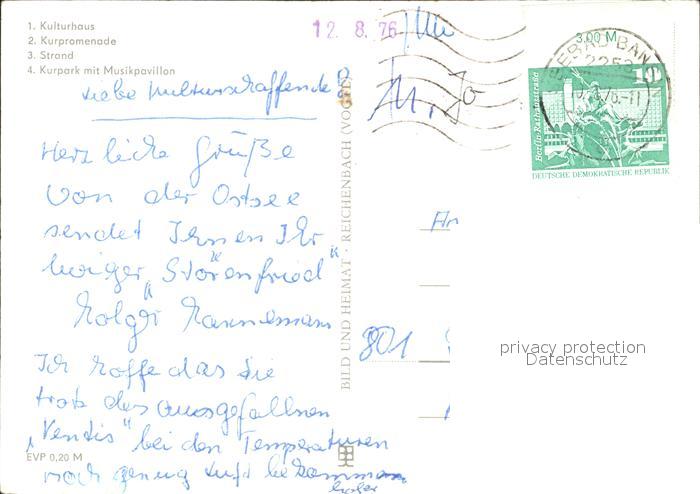 72455902 alte Postkarte Heringsdorf Ostseebad Usedom Kulturhaus Kurpromenade Strand Musikpavillon postalisch gelaufen Erhaltung siehe scans KatCode: 11110013059112